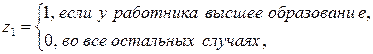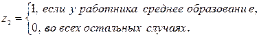 Третьей дихотомической переменной z 3 и не требуется, так как если работник имеет начальное образование, то это уже учтено при