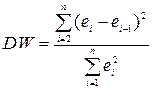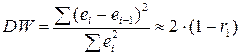 Поэтому критерий Дарбина–Уотсона основан на следующем соотношении, связывающим DW -статистику с коэффициентом автокорреляции первого порядка