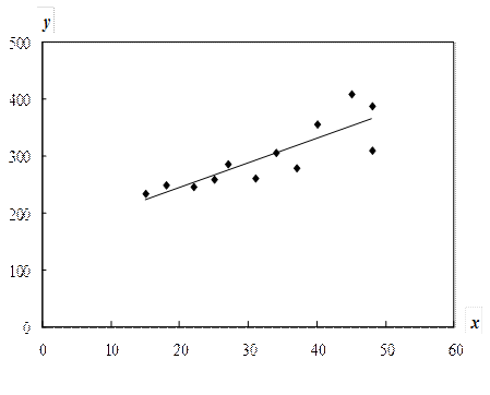 1. По статистическим данным строим модель парной регрессии, параметры которой оцениваем обычным методом наименьших квадратов. С помощью табличного процессора MS Excel определяем коэффициенты уравнения регрессии: