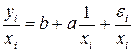 3. Применим взвешенный МНК к исходной модели в предположении, что среднее квадратическое отклонение остатков пропорционально значению фактора