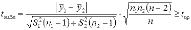 и применяется t- статистика, имеющая распределение Стьюдента с числом степеней свободы, равным