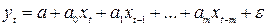 Если модель (6.4) применяется для описания зависимости потребления человека от его дохода, то она учитывает доход человека в данный момент и его потребление в предыдущий период. В отличие от (6.4), например, модель