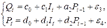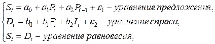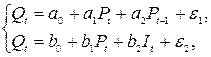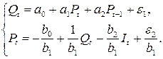 Приведенная форма содержит два уравнения (по числу эндогенных переменных модели). Каждое уравнение приведенной формы представляет собой зависимость эндогенной переменной от предопределенных переменных модели (дохода и цены в предыдущий период). В результате имеем приведенную форму: