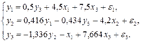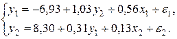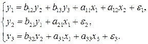 Таким образом, исследуемая система идентифицируема. Поэтому для ее решения применим косвенный метод наименьших квадратов: структурные коэффициенты модели с помощью алгебраических преобразований выразим через приведенные коэффициенты.