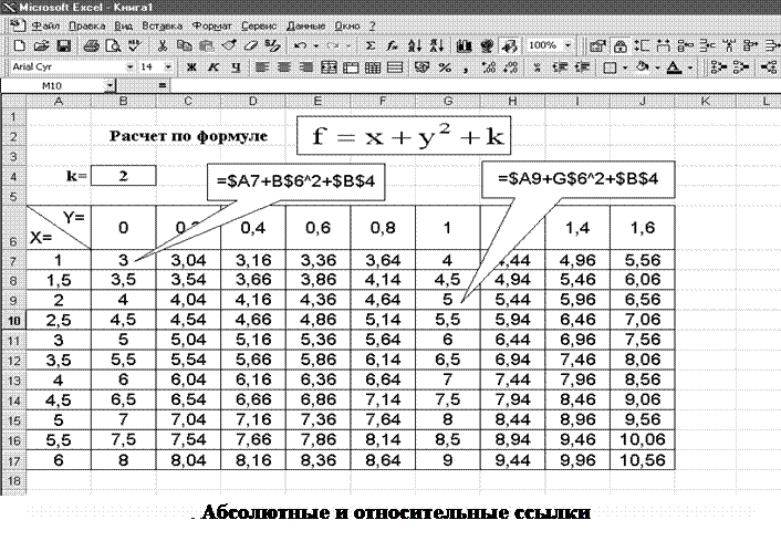 | Относительный адрес ячейки | Абсолютный адрес ячейки | |||