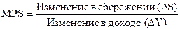 Предельная склонность к сбережению (MPS) представляет собой отношение любого изменения в сбережениях к тому изменению в доходе, которое его вызвало.
