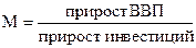 Кейнсианская теория показывает, что при росте инвестиций рост ВНП будет происходить в гораздо большем размере, чем первоначально дополнительные инвестиции. Это вытекает из того, что инвестиции приводят к нарастающему эффекту (эффекту мультипликатора). Образно выражаясь, можно сказать: как камень, брошенный в воду, вызывает круги на воде, так и инвестиции, «брошенные» в экономику, вызывают цепную реакцию в виде роста дохода и занятости. Мультипликатор может быть исчислен следующим образом: