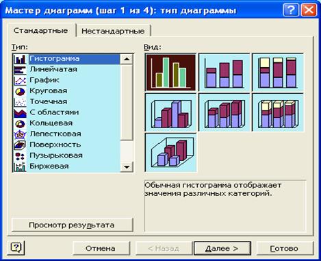 1. Выбор типа (формы) диаграммы.