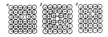 а – вакансии; б – межузельный атом; в – примесный атом внедрения