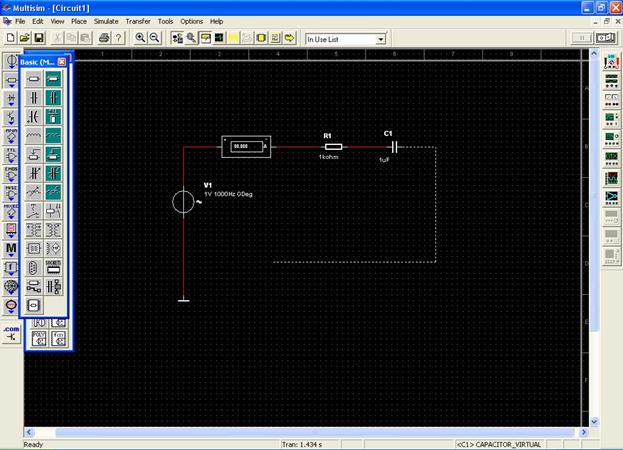 Сопротивление проводников в Multisim нулевое. Необходимо иметь ввиду, что схема обязательно должна быть заземлена, и на рабочем поле должен присутствовать хотя бы один измерительный прибор. Заземление подключается к любой точке схемы.