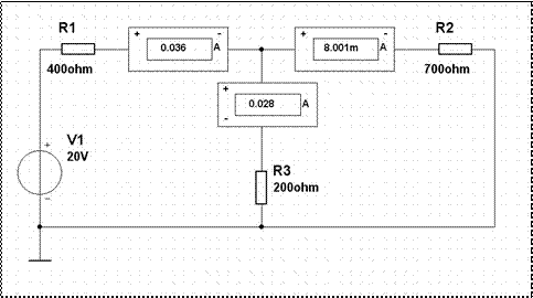 На третьем этапе требуется убедиться в справедливости метода наложения. Найдём алгебраическую сумму частичных токов и сравним полученные токи с токами снятыми нами в первом эксперименте.