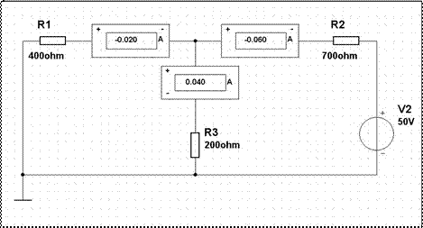При измерении токов требуется обратить внимание на направление протекающих токов. Положительным направление считается от плюса к минусу. Для представленной схемы токи в ветвях равны: