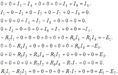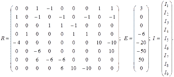 Матричная форма записи системы уравнений: R×I=E.