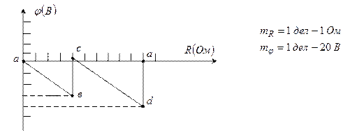 Ом и выберем масштабы по оси ординат. Точку а помещаем в начало координат. Определяем потенциалы в, с, d и их координаты.