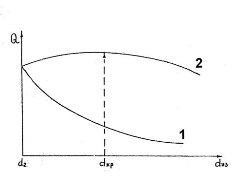 Наибольшие тепловые потери при неправильном выборе материала изоляции соответствуют критическому диаметру изоляции, определяемому по зависимости: