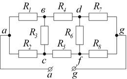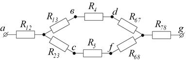 Решение: Заменим треугольники авс и dfg эквивалентными звездами.
