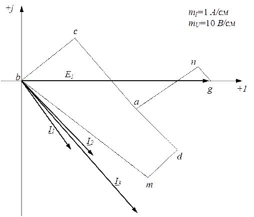 Для построения топографической диаграммы рассчитываем потенциалы точек схемы, приняв