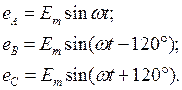 График изменения во времени э.д.с. отдельных фаз показаны на рис.1.