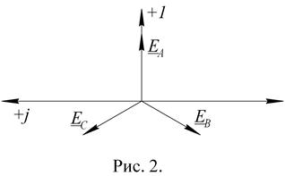 Векторная диаграмма э.д.с. трехфазного симметричного источника показана на рис.2.