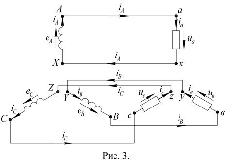 Если обмотки генератора не связаны электрически, то такая система представляет собой три самостоятельных однофазных системы (рис.3).