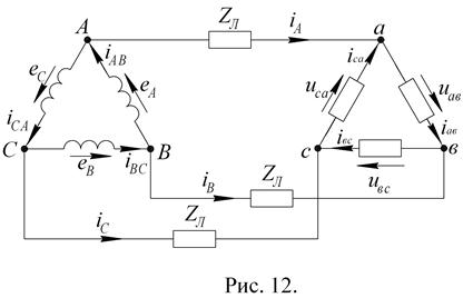 Соединение источника и приемника треугольником изображено на рис. 12.