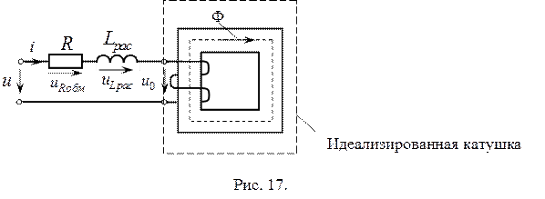 и идеализированной катушки (рис. 17). У идеализированной катушки обмотка не имеет сопротивления и рассеяния. Свойства идеализированной катушки зависят только от параметров магнитопровода и режима его намагничивания.