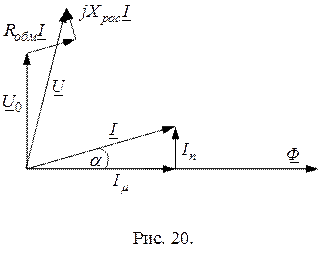 Схема замещения реальной катушки для этого случая представлена на рис. 18.а, соответствующая ей векторная диаграмма на рис. 18.б.
