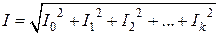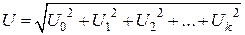 Действующее значение периодической функции тока и напряжения, представленной рядом Фурье, определяется через действующие значения всех гармоник:
