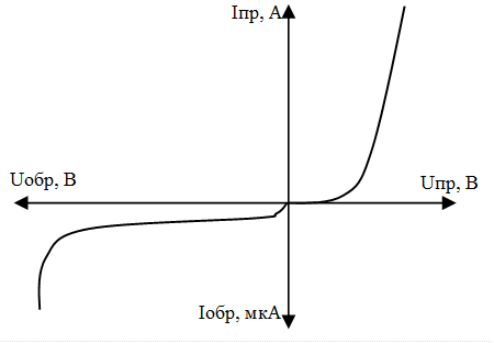Прибор с одним p-n- переходом получил название диода. ВАХ диода совпадает с ВАХ p-n- перехода (рис.1).