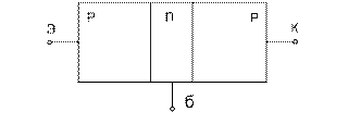 Средняя, тонкая область транзистора называется базой (б), одна крайняя область – эмиттером (э), другая крайняя область – коллектором (к).
