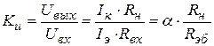 коэффициенты усиления по напряжению, по току, по мощности: