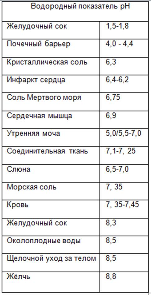 Обращая взор на человеческое «царство природы», мы видим, что основа нашей жизни – наша кровь – имеет показатель рН от 7,35 до 7,45, то есть слегка щелочная. Показатели рН мочи могут колебаться между рН 4 у больных и до рН 8 у младенцев.