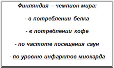 Кстати, на исследовании можно было бы сэкономить. Нужно было всего лишь задуматься над истинной причиной инфарктов сердца! Эта причина - высокое содержание шлаков и кислот в организме финских мужчин. В борьбе с инфарктом им может помочь последовательное выведение шлаков, предотвращение потерь минеральных веществ организмом и употребление энергетических минеральных веществ. Они должны быть обязательно растительного происхождения! А в Финляндии как раз не хватает энергетической вегетарианской пищи. Там, на дальнем севере Европы, ассортимент продуктов растительного происхождения очень невелик, зато больше чем достаточно продуктов животного происхождения - яиц, сыра, молока, рыбы и мяса. Следовательно, организм финских мужчин быстрее закисляется и зашлаковывается, чем организм мужчин других европейских стран.