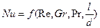 В случае вынужденной конвекции при течении жидкости в трубах и каналах анализ методами теории подобия приводит в общем случае к функциональной связи: