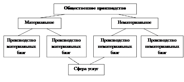 От сферы материального производства следует отличать непроизводственную сферу, или сферу нематериального производства. К ней относятся здравоохранение, просвещение, наука (дискуссионное положение), культура, искусство, жилищное, коммунальное хозяйство, бытовое обслуживание, управление, финансирование и кредитование, пассажирский транспорт, связь (по обслуживанию организаций непроизводственной сферы и населения), спорт и т.д.