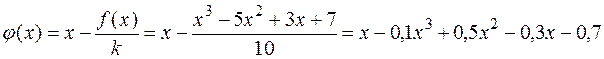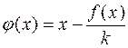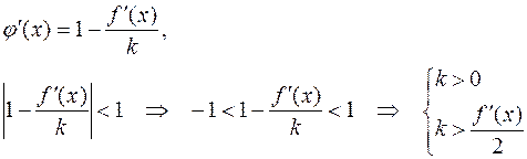 , подобрав значение k таким, чтобы обеспечить сходимость итерационного процесса на данном промежутке. Для этого вычислим значение производной на концах отрезка