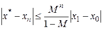 [ a,b ], то уравнение x= φ (x) имеет на отрезке [ a,b ] единственный корень и последовательность{ xn }сходится к этому корню независимо от начального значения.