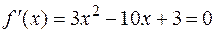 Отделим корни аналитически, для этого найдем критические точки функции, т. е. точки, в которых производная функции обращается в ноль и границы интервала, определим знак функции в них.
