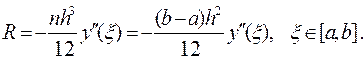 Формула (8) называется формулой трапеций для приближенного вычисления определенного интеграла. Остаточный член (ошибка) квадратурной формулы (8) равен