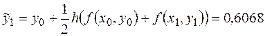 Пример. Используя метод Эйлера с уточнением, составить таблицу приближенных значений интеграла дифференциального уравнения