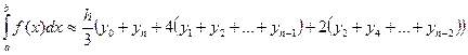 Поэтому в отличие от предыдущих методов вычисления по методу Симпсона требуют табулирование функции отдельно по четным и нечетным номерам точек. Расчетная таблица имеет следующий вид.