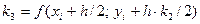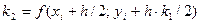 Общий порядок расчета тот же, что и для метода Эйлера, однако расчетная таблица будет включать расчет четырех угловых коэффициентов. Она содержит следующие столбцы.