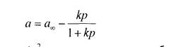 где а - адсорбция, моль/м2; а∞- предельная адсорбция (емкость монослоя), моль/м2; k - константа адсорбционногоравновесия; р - равновесное давление адсорбтива в объемефазы, граничащей с адсорбентом.