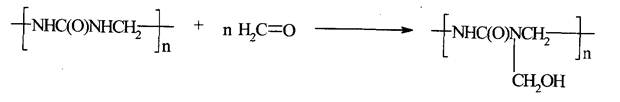 Атомы водорода NH-группы линейного полимера могут далее замещаться метилольными (СН2ОН) группами в присутствии избытка формальдегида: