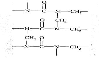 Структура конечного продукта, как и при конденсации ФФС, зависит от соотношения мочевины и формальдегида в исходной смеси. Так, при нагреве линейного полимера в присутствии избытка формальдегида образуется трехмерный сетчатый полимер: