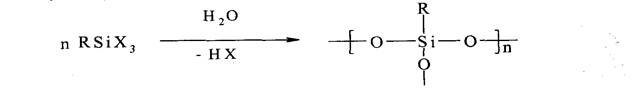 получают гидролитической поликонденсацией органохлор- или органоал-коксисиланов RSiX3 или R2SiX2, где R - алкил (чаще всего - СН3 или С2Н5), арил; X - хлор или алкокси-группа.