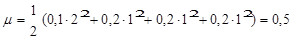 m = ½ (0,05∙22 + 0,1∙12) = 0,15.