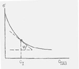 называется поверхностной активностью. Она выражается по графику как тангенс угла наклона касательной к кривой, проведенной в точке, соответствующей заданной концентрации (рис. 3).