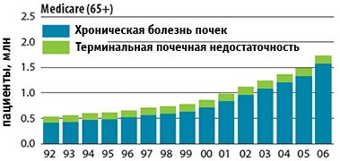По данным крупных популяционных регистров, распространенность ХБП составляет не менее 10%, достигая 20% и более у отдельных категорий лиц (пожилые, сахарный диабет 2 типа). Для сравнения: хроническая сердечная недостаточность встречается у 1% населения, бронхиальная астма у 5% взрослого населения, сахарный диабет - у 4-10%, артериальная гипертензия - у 20-25% (рисунок 1). В педиатрической популяции имеются ограниченные сведения по поводу эпидемиологии ХБП. Большинство данных относительно эпидемиологии ХБП в педиатрии касается более серьезных стадий почечной недостаточности. Поскольку ХБП часто протекает бессимптомно на ранних стадиях и/или не диагностируется.