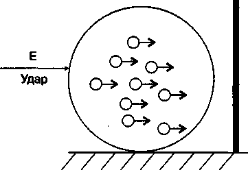 все его частицы беспорядочно ориентированы. Второму шару (правая часть рис. 3) также придана дополнительная энергия, которая сообщается ему путем толчка или удара. В этом случае все частицы шара ориентированы в направлении, противоположном толчку или удару, т.е. в одном направлении, поэтому шар начинает движение и может пробить тонкую стенку на своем пути. Таким образом, при сообщении шару некоторого количества энергии воздействие его на внешнюю среду будет различным в зависимости от направления ориентации различных частей.